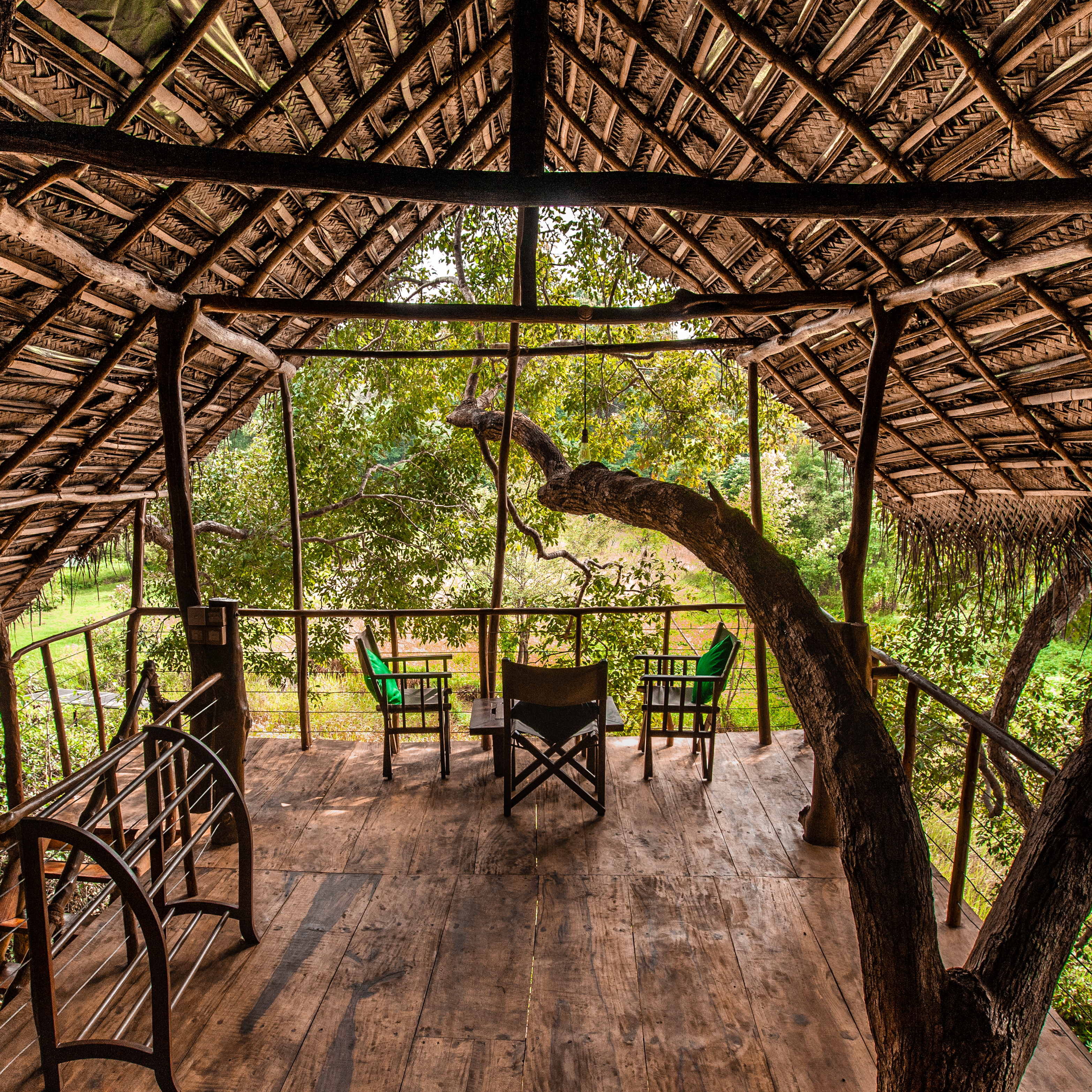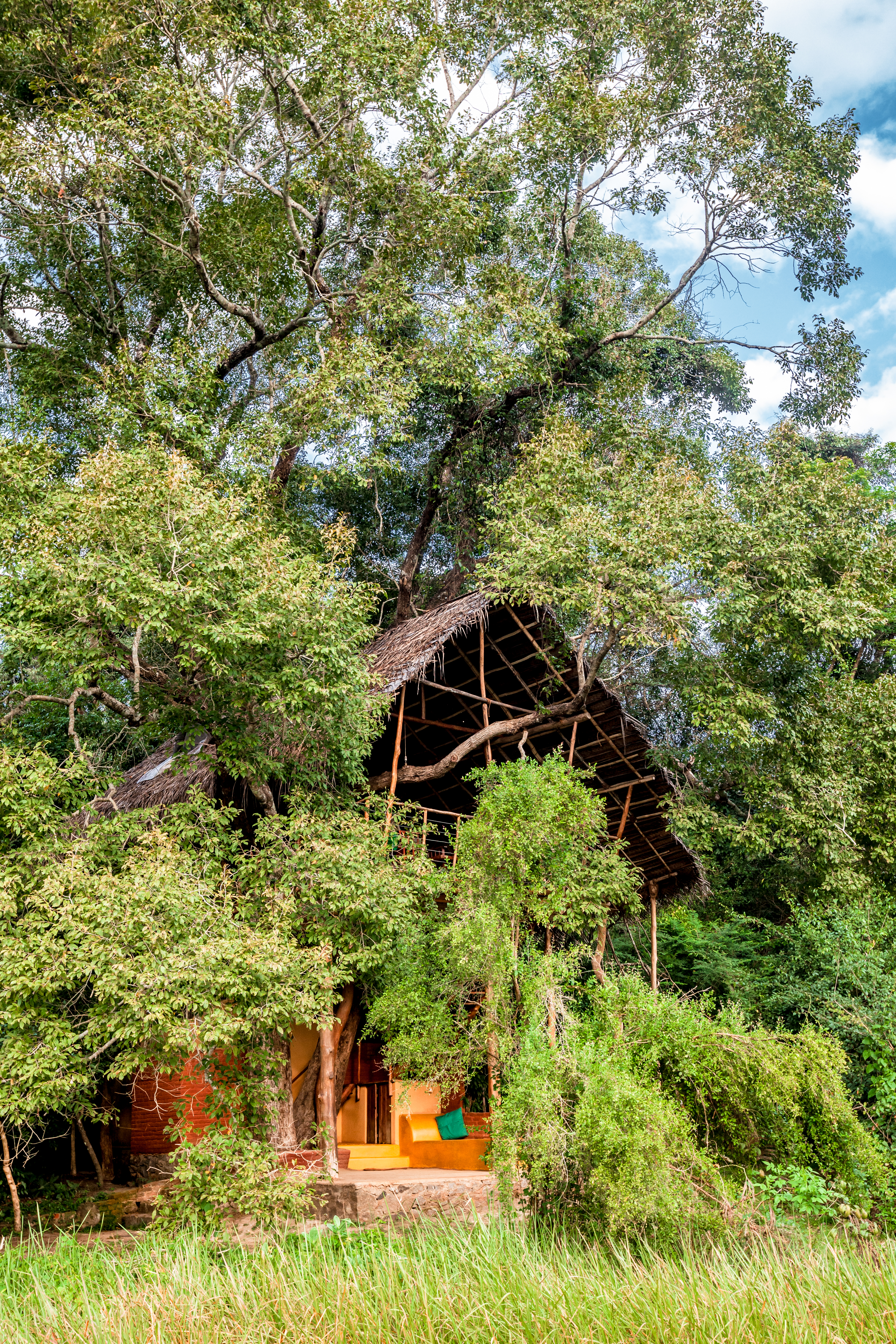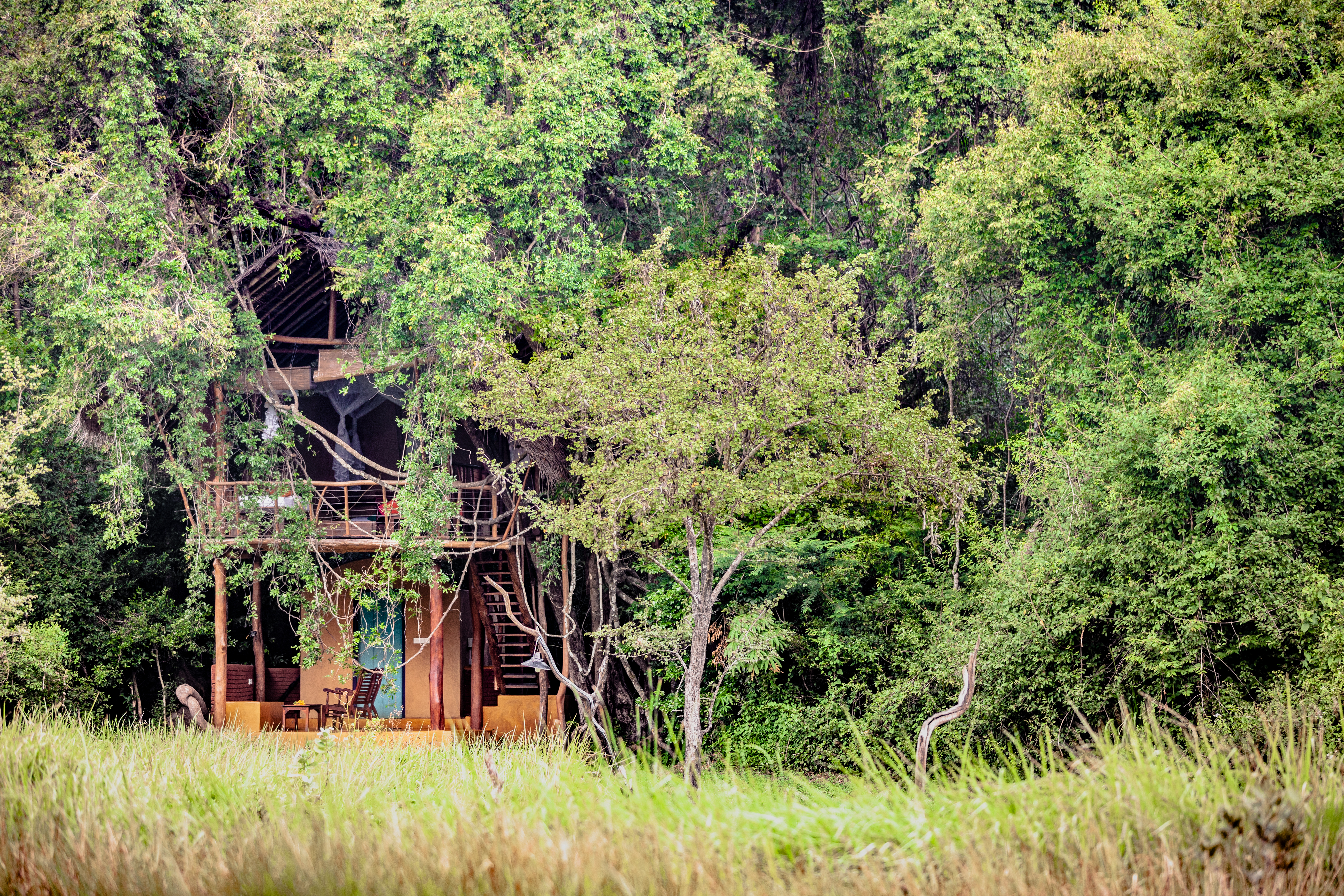 Today, Back of Beyond has many treehouses to offer guests, and perhaps the most beautiful are at their property in Dehigaha Ela, bordered by a gurgling stream and encased in an envelope of wild, dense forest. Leopards and elephants come to visit, and otters leave fish bones and other debris from their feasts on the banks of a pond in the clearing.