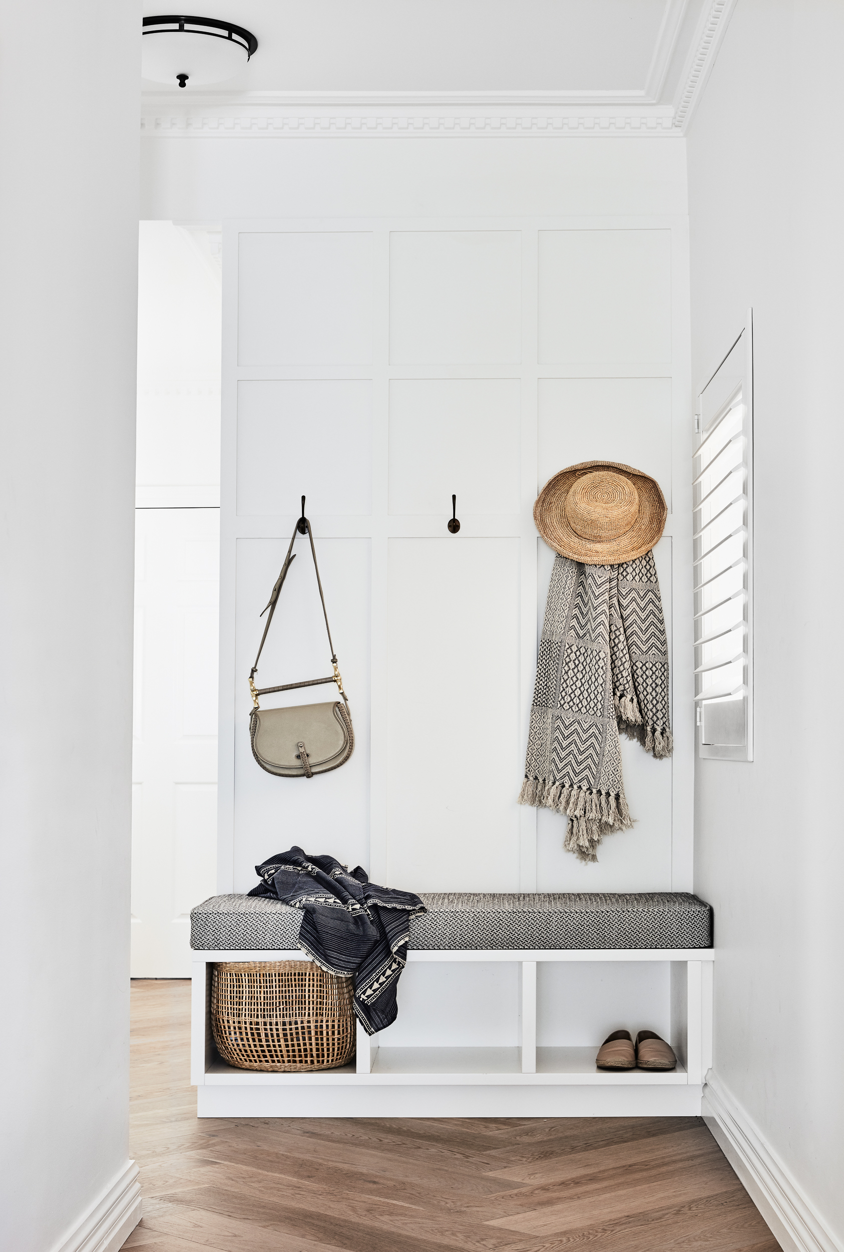 A modest exterior belies the house’s sophisticated interiors, which are defined by clean lines and a pleasing sense of lightness emphasised by the walls decked in natural white. The original construction was stark and very structured – a look that did not suit the taste of its new owners. A family of five, they were hoping for something with a lot more character and warmth, yet equally, they did not want something that was very ‘showy’ either. The concept direction was to steer away from an overly designed aesthetic and to instead embrace the understated, the classic and the timeless. As many renovations do, the scope of this project expanded over time, beginning with just the living spaces but then evolving to encompass the entirety of the home.